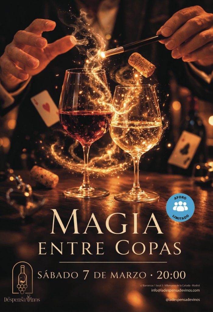 Para el Sábado 7 de Marzo de 2026, tenemos una sesión de magia en La Despensa de Vinos. Acércate y disfruta de la magia entre vinos! (Aforo limitado)